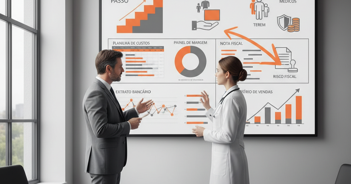 Comece com um diagnóstico simples: volume médio de atendimentos, perfil de cliente (convênio/particular) e necessidade de emissão de nota fiscal eletrônica. Isso define se compensa abrir PJ e qual regime tributário convém para preservar margem.